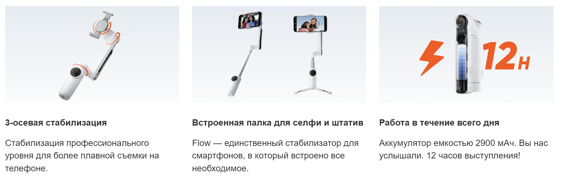 Insta360 Flow Creator Kit White – 3-х осевой стабилизатор для смартфонов с функциями искусственного интеллекта со встроенной селфи-палкой и триподом. Отслеживание объектов в реальном времени, автоматический монтаж, большой набор шаблонов для съемки с подробными инструкциями.